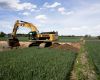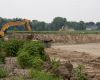 In het gebied "De Weerd" is langs de maas een smalle strook nog niet weggegraven. Dit voorkomt dat in geval van een hogere stand van de Maas het werkgebied al gelijk onder water staat. Links de " Overslag" aan de overkant van de Maas.
